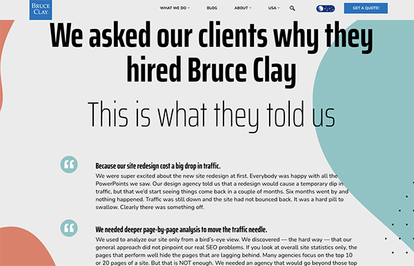 Looking for an experienced SEO agency with a proven track record of helping websites get to Page 1 in the search results? Look no further than Bruce Clay, Inc.! Reach out to us to schedule a free consultation.