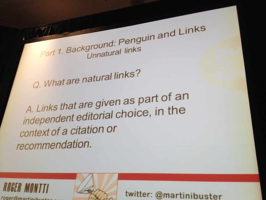 Asks who can clearly explain what a Penguin penalty is (by show of hands). No one raises their hand. He jokes to the panel that he “knew!” we didn’t know what was going on.