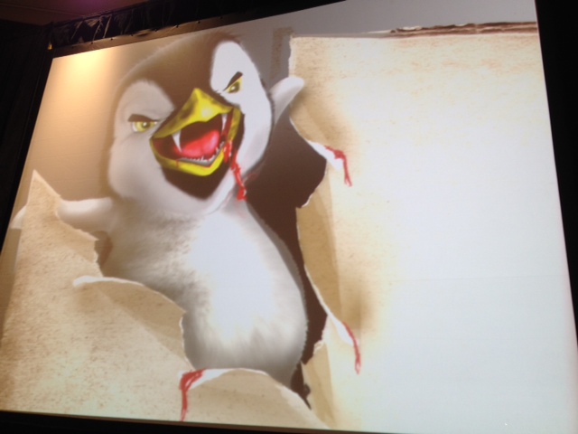 “The war against the machines is happening right now” There’s some gibberjabber going on about cyborgs and penguins being the devil and some coherts with Google and Apple and there are slides with evil blood-hungry penguins….