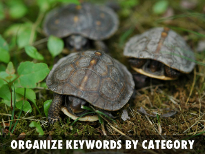 In your keyword spreadsheet (built previously or while following this SEO guide), start moving rows up and down to group keywords in topical categories. You can separate categories into different tabs, if that’s easier.